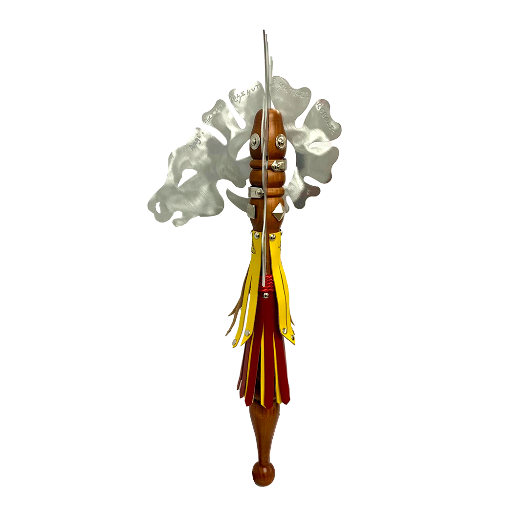 Las porras personalizadas son piezas emblemáticas que combinan tradición, estética y funcionalidad para las comparsas y agrupaciones de Moros y Cristianos. Fabricada en nuestro taller de forma artesanal, con diseños exclusivos, las hojas en aluminio y puedes escoger 2 o 4 hojas en la porra que se unen al soporte de madera. Permiten adaptarse a distintos usos: desfiles, decoración o como regalo simbólico.